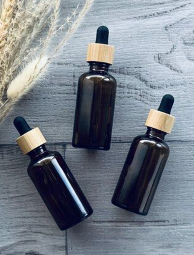 Amber Glass Bottle with Bamboo Lid and Dropper - 50ml